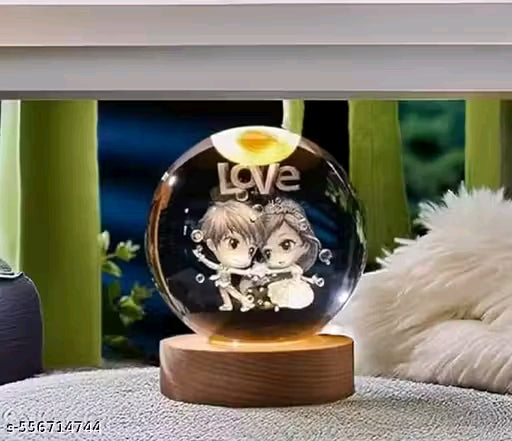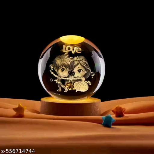 Everglow 3D Crystals Ball with LED Wooden Base-Solar System Night Light, 3D Crystals Ball, Galaxys Lamp Ball,Light Lamp with USB Powered (Love Ball)
